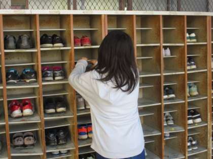 自分たちができることを考え,今日は,全校のトイレのスリッパと下駄箱を整頓してみました。