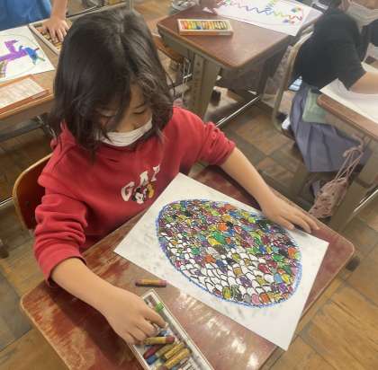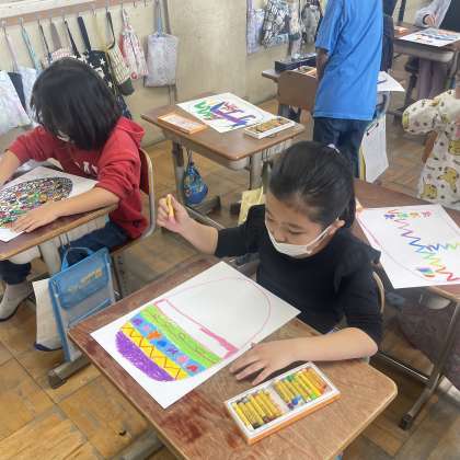 図画工作科では、あったらいいなと思う世界を想像しながら、その世界のたまごをかきました。おかしのせかい、ロボットのせかい、うちゅうのせかい…とってもすてきなたまごができました。来週は、たまごの中の世界を描いていきます。どんな世界が広がるのか楽しみです。