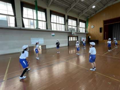 4年生から始まるソフトバレーボールの学習。今日は準備の仕方を覚えたり,ボールに慣れたりしました。なかなかボールを繋ぐのが難しい様子です。友達と声をかけあいながら,少しずつコツをつかんでいければと思います。
