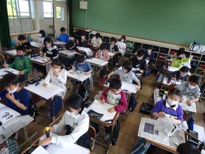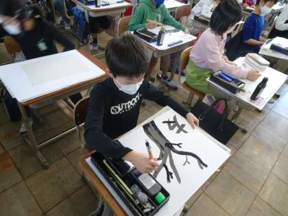 今年の目標や願いをこめた漢字と木の幹を書きました。