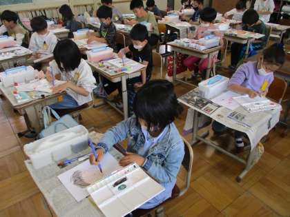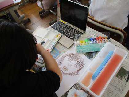 図画工作科の学習で、自画像に挑戦中です。