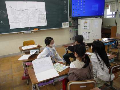 今日は初めての社会科の学習がありました。社会科の学習では、校区の町の様子や働く人々について調べていきます。今日は生活科で学習したことを振り返りながら、校区にはどのような場所や施設があるかを思い出しました。また岩倉南の町についてたくさん知っていこうと思います。