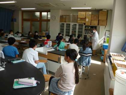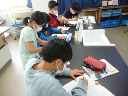 5年生は理科室で理科の学習を行います。1回目は理科室の中を詳しく調べ、様々な実験用具に興味をもっていました。2回目の今日は「天気と情報」の学習がスタートし、学習問題に対して予想をしっかりと考えていました。