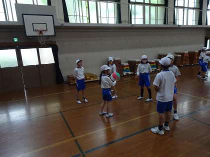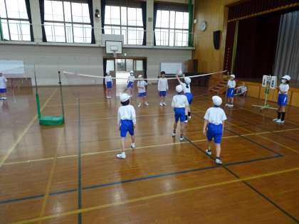5年生の体育ではソフトバレーボールをしています。