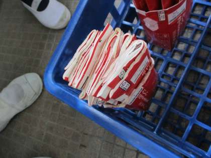 牛乳パックを洗うところからなかなか帰ってこないので、心配して見に行くと、学級全員分のパックを入れられるのではないかと、相談しながらまとめている姿が見られました。