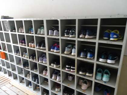 くつ箱のくつをきれいにそろえています。