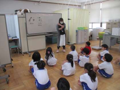 はじめて保健室へ行き,養護の先生から「保健室の約束」の話を聞きました。保健室ではしんどい人も来るので,静かにすること,けがをしたときはどのように保健室へ行くのか・・・など教えてもらいました。