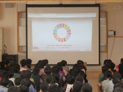 総合の学習でSDGsについて知りました。今後は、地球の環境を守るために、自分たちが興味をもった内容を調べていきます。