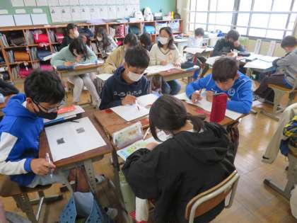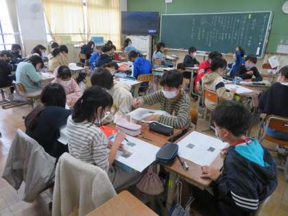 国語科の帰り道の学習では、これまでの学びを生かして物語を読み深めています。登場人物の人柄を読み取った後、二人の関係性や心情の変化を根拠をもって探しています。これまでに物語文を読み深めた経験が生かせているようです。