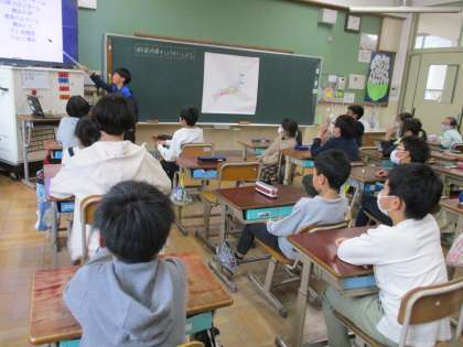 社会科では、都道府県の学習をしています。今日は有名な食べ物や場所などの紹介をしました。子どもたちは発表を聞いて、「おいしそう」「行ってみたい!」など、つぶやいていました。