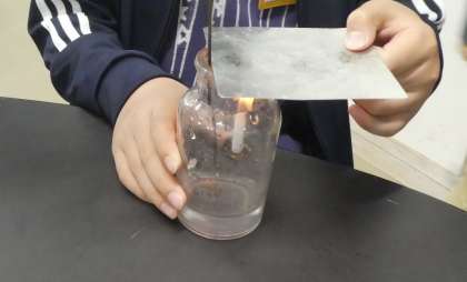 びんの中で,ものが燃える前と燃えた後で,中の空気がどのように変化するかを調べました。