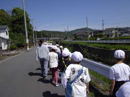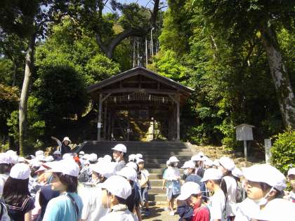 今日は晴天の中,山住神社や学区の様子を見に学区探検に行ってきました。山住神社にある大きな石を見て子どもたちは岩倉の歴史を感じていました。