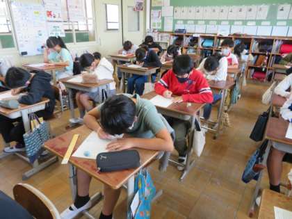 6年生になって初めてのテストです。この日までに自分で計画を立てて学習を進めてきたようで、子どもたちはやる気に満ち溢れていました。結果は良かったり悪かったりとそれぞれだと思いますが、一喜一憂するのではなく、勉強の仕方を振り返って、自分に合った勉強方法を見つけてほしいと思います。