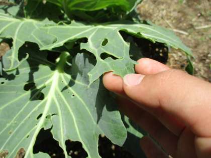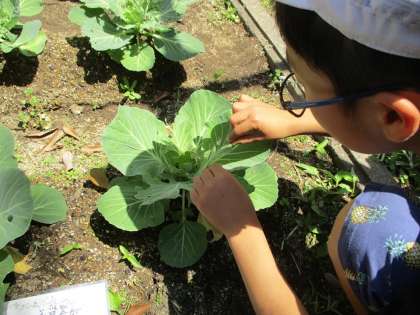 理科の学習で種まきに畑に行ったとき,子どもたちがモンシロチョウのたまごを見つけました。