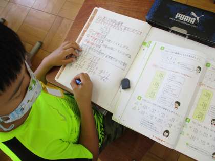 繰り上がりに気を付けながら,丁寧にノートにかいて問題を解く姿が見られます。