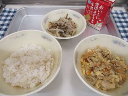 今日は、沖縄料理でした。給食カレンダーで、沖縄の方言で「おいしい」を「まーさん」ということを知りましたね!「今日の給食、まーさん!めっちゃおいしい!」「沖縄行ったときに食べた気がするよ!」と話しかけてくれた人がいました。