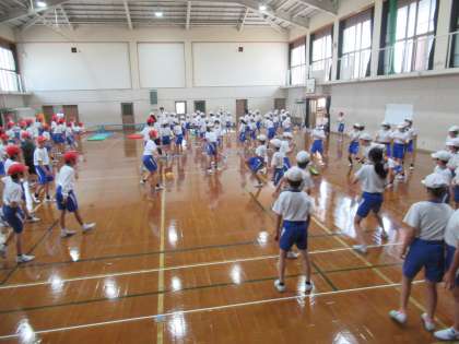 体力テストのあと、学年対抗のドッチビーをしました。どの試合も白熱した戦いとなりました。また学年で遊ぶことも大切にしてほしいと思います。