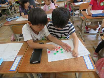 8や9などの数はいくつといくつに分けることができるのかを考えて話し合っています。