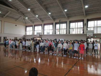 劇の終わりにはみんなで「世界中の子どもたち」を合唱しました。6年生らしい美しい歌声で1年生に想いを届けることができました。