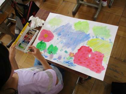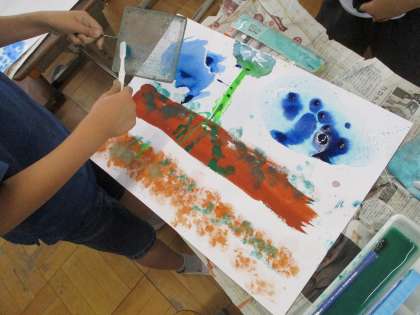 さまざまな技法を使って描いたものに,パスやコンテで自由にかき足して完成させました。