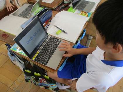 「秒」の意味やその感覚をつかむため,タイマーやストップウォッチを使った活動に取り組みました。