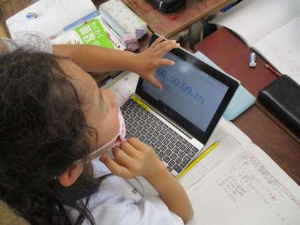 秒数を決めてストップウォッチを動かして,目をつぶって数えてあてるゲームにもトライしました。