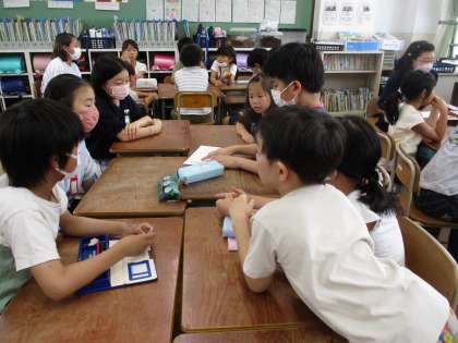 今日の2時間目にたてわり活動の顔合せがありました。今年度はペア学年でのグループ活動ではなく、グループに1年生から6年生までがいて、6年生中心に楽しく遊ぼうと計画しています。これから運動場遊びや教室遊び、たてわり遠足もあるのでこれからの活動が楽しみです。