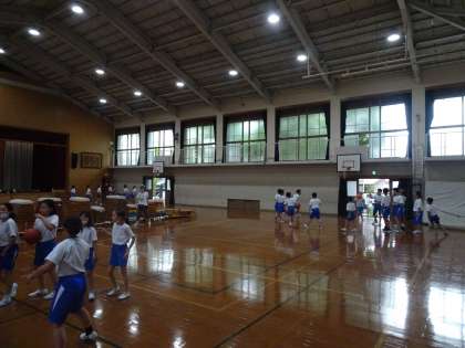 部活動も頑張っています。火曜日の体育館では、バスケットボール部が活動しています。