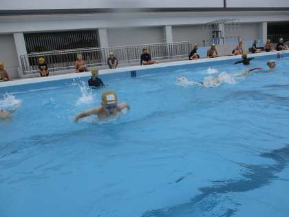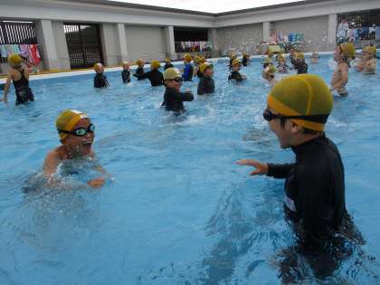 今日は3年生になって初めての水泳運動がありました。2年生の時に学習しただるま浮きやくらげ浮きなどの浮く活動からはじめ、最後は3年生で初めて学習する初歩的な泳ぎで進む活動もしました。けのびや今できる自分が得意な進み方で泳いでいました。子どもたちはとても楽しく活動をしていました。