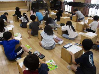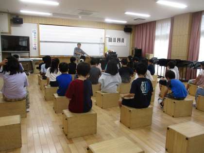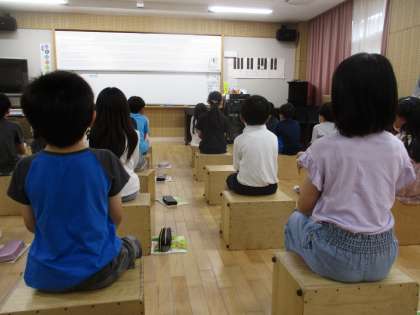 今日は初めて音楽室で学習をしました。音楽室でのルールを確認してから、ベートーベンの「メヌエット」を鑑賞しました。曲の初めの方はこんな感じがする、曲の終わりになるにつれてこんな感じがすると曲の調子や強弱に気をつけながら聞いていました。
