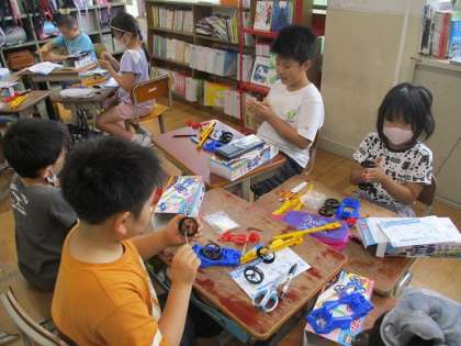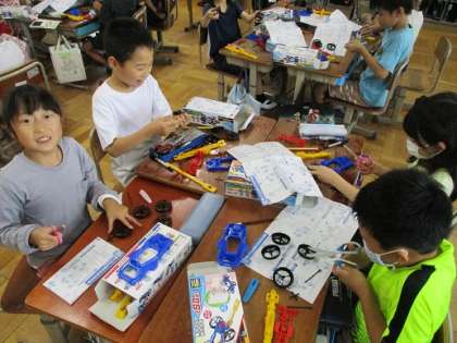 理科の学習の一環で,車を使った実験をするための準備をしています。