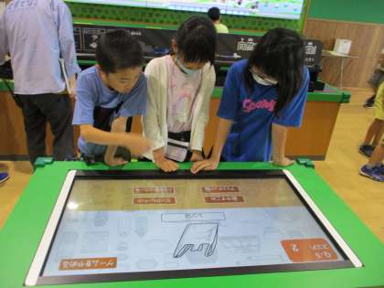 社会科見学「さすてな京都」では、自転車をこいで発電したり、クイズに答えたりしました。「さっき見た!」「電気がついた!」と子どもたちは楽しそうでした。