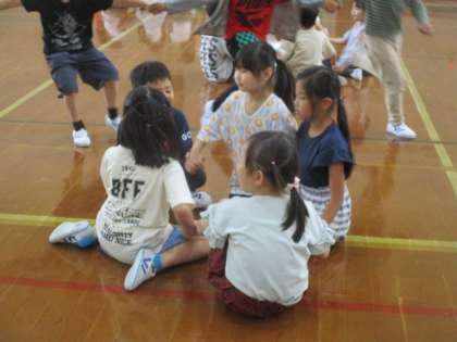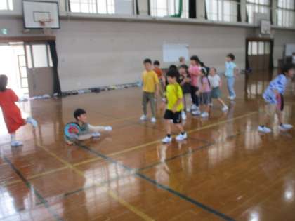 今日は,ほかのクラスと遊ぶ時間を作りました。「もうじゅうがり」や「ドッジビー」をして楽しく仲良く遊びました。