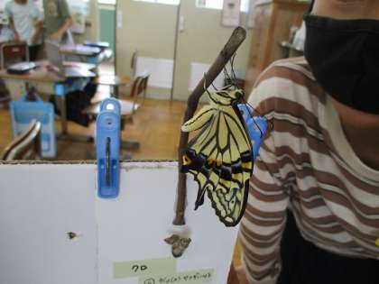 モンシロチョウが旅立ち,少しさみしい思いをしていましたが,別の種類の生き物を連れてきてくれたりお世話をしてくれたりと,教室で生き物と一緒に過ごす日々が続いています。