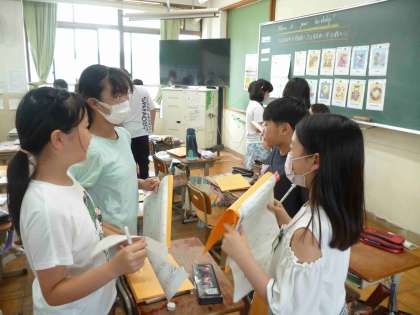 外国語の学習で、誕生日をたずねあう学習をしています。今日は、友達と英語で会話し誕生日を教えてもらい、カレンダーに書き込んでいました。