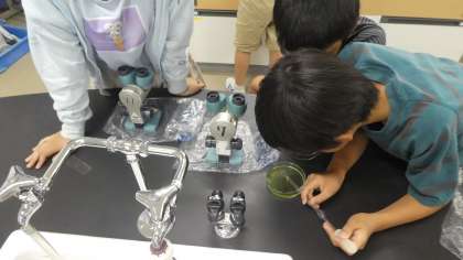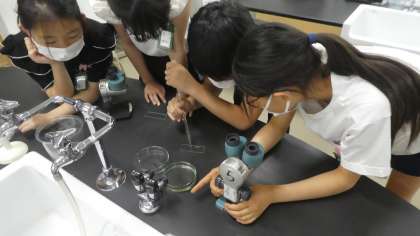 解剖顕微鏡や双眼実体顕微鏡、生物顕微鏡などを使い、卵の観察をしました。