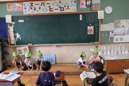 たしざんの学習が終わり、本日からひきざんの学習が始まりました。今回もみんなにカエルになりきってもらってひきざんの導入をしました。
