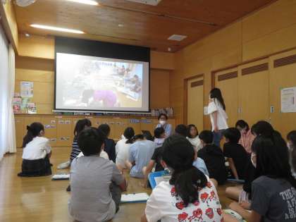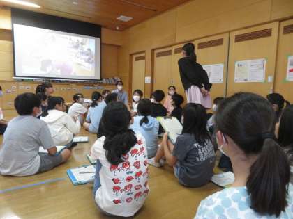 社会科「子育て支援を実現する政治」の学習で、岩倉児童館に行きました。小学生を預かるだけでなく、乳幼児やその保護者同士をつなぐ活動をされていることを知り、身近なところにも子育て支援があったことに子どもたちは驚いていました。