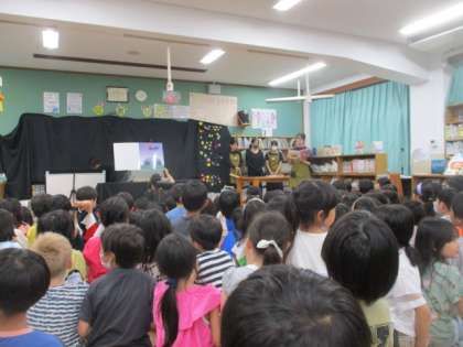 昼休み,PTAの方が1年生・6組さんののために読み聞かせの会スペシャルを開いてくださいました。楽器を使ったりペープサートを使ったり,楽しい読聞かせの会でした。1年生は大喜びでした。