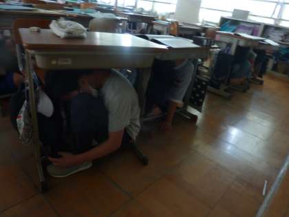 本日、引き渡し訓練を行いました。ご協力いただいた保護者の皆様、ありがとうございました。緊急地震速報が鳴ると、素早く机の下にもぐり込み、身を守る行動をとっていました。訓練は本番のようにという気持ちが伝わってきました。