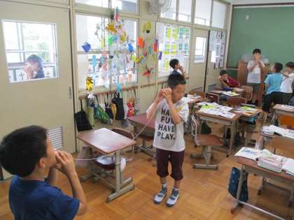 声がなぜ届くのか,友だちと試しながら話す姿が見られました。