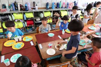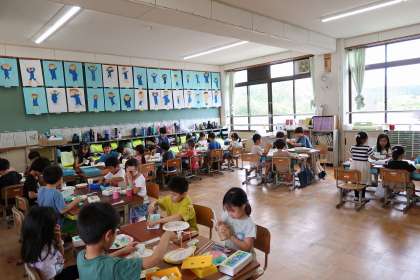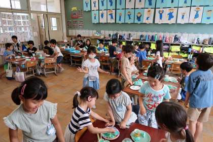図画工作科の学習でねんどを使ってごちそうを作りました。「みんなにとってごちそうってなあに?」と聞くとお寿司やケーキなど様々な料理が出てきました。