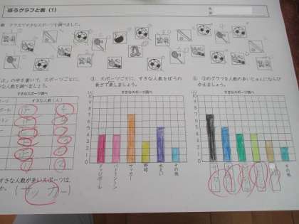 棒グラフの読み取りやかき方について学習をしています。