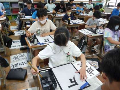 1学期最後の書写の授業を行いました。筆順に気を付け、集中しながら丁寧に書きました。