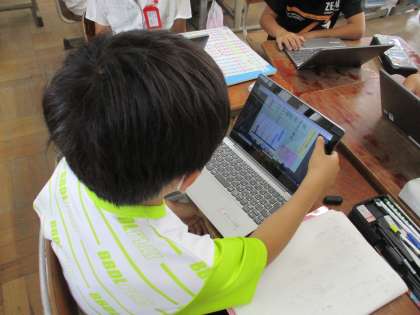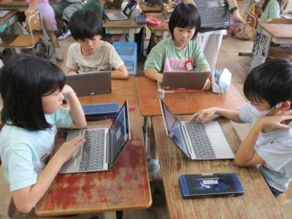 国語科では、新聞についての学習をしています。みんなに読みたい!と思ってもらえるような記事を書けるように、見出しをつけたり、写真を載せたり、グラフで示したりと、様々な工夫をしています。子どもたちはみんながつくったデジタル新聞を読み楽しんでいました。