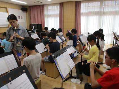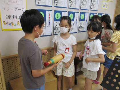 音楽科の学習では、リズムを意識しながら合奏に取り組んでいました。子どもたちは少し緊張しながらも、楽しそうに合奏していました。