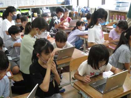 6年生のお兄さん、お姉さんに来てもらって、タブレットの使い方を教えてもらいました。一人一人についてくださったので、子どもたちもたくさん質問しながら楽しんで取り組んでいました。