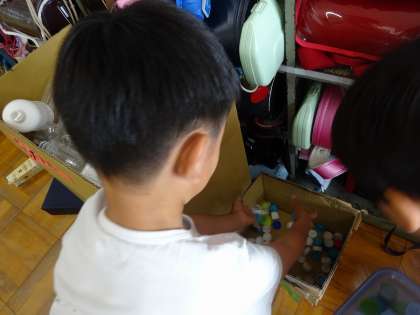 生活科では「あそんでためしてくふうして」の学習に取り組んでいます。今日は、遊びやすいように廃材を種類ごとに分けました。つつやペットボトルなど種類ごとに分けることですっきりとしてもっと遊びを考えやすくなったように思います。
