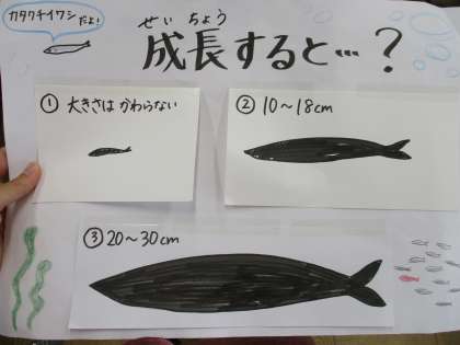今日の「じゃこ」は「カタクチイワシ」という魚の赤ちゃんを使っています。では、カタクチイワシは大人になると、どれくらいの大きさになるでしょうか?