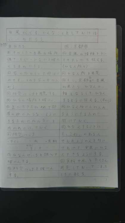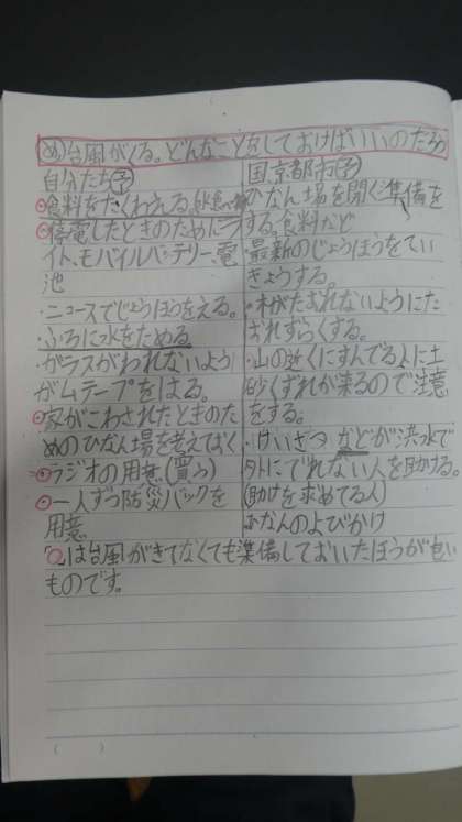 台風が近づいて来ると、どのような備えをすればよいかについて、考えました。